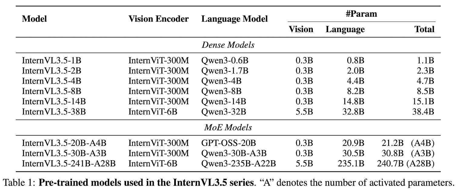 The InternVL3.5 follows ViT-MLP-LLM paradigm