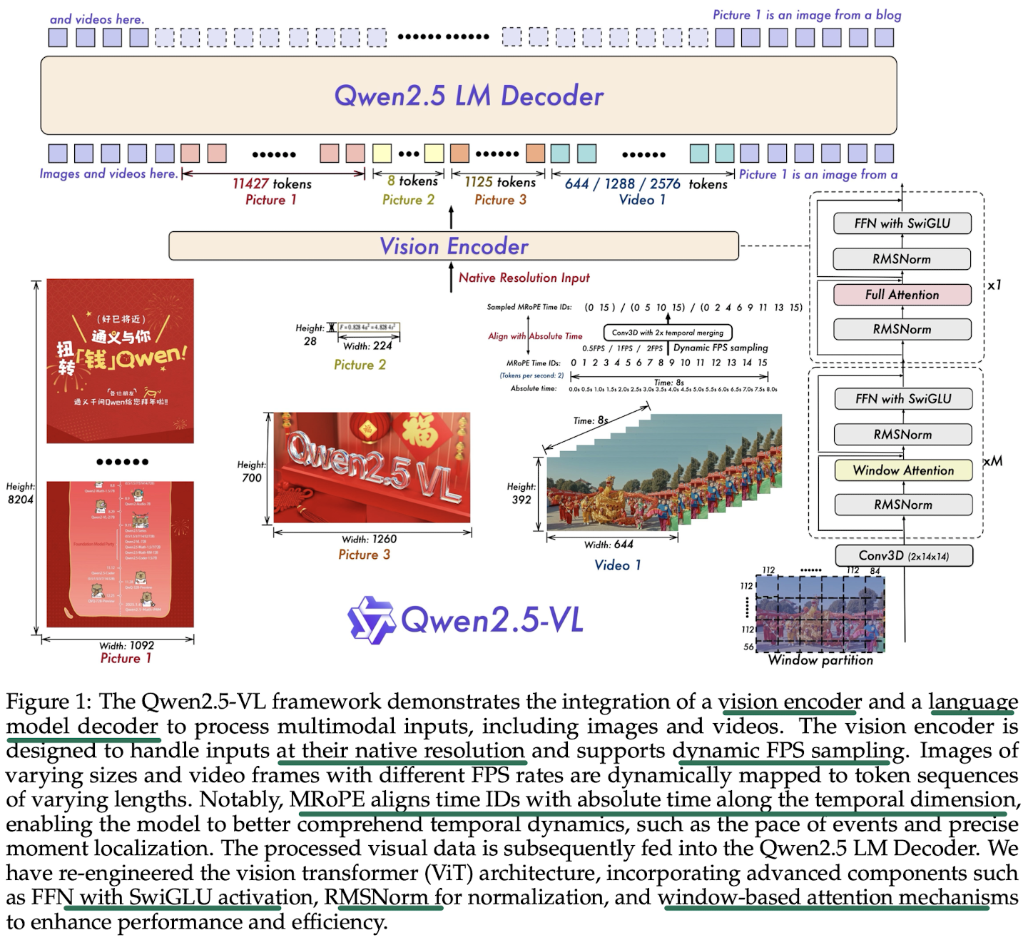- aligns MRoPE IDs directly with the timestamps, allows model to understand the tempo of time through the intervals between temporal dimensions IDs, without necessitating any additional computational overhead 通过将 mRoPE(多模态旋转位置嵌入)ID直接与时间戳对齐,模型能够 通过时间维度 ID 之间的间隔来理解时间节奏,无需额外的计算开销。